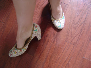 Although the sweet bird-patterned heals were much better suited to the delicate fabric and trim cut of the frock, I must admit that they did not make it with me into the music party I attended.  I switched to my new “frost” colored moccasins (the ones with the beaded eagle on top) before I even got into my minivan.  Function over fashion ladies…almost always!