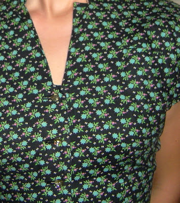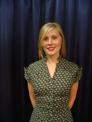 When I found this dress in an antique mall in Virginia, I was totally thrilled. The print is just darling– holly leaves and berries on black cotton cloth. It features rhinestone buttons up the front, elven-like pointed cuffs on the sleeves, and a nice-like framed v-collar.