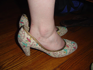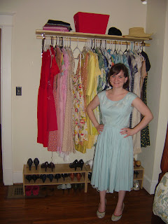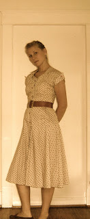 I wore a brand new 1940’s Blue Linen gem. The white-buttons go all the way up the front and the neckline is just charming. I love love it. It may be my new favorite. And for all of you readers out there who are curious about how I know it is 1940’s, the buttons (and no zipper) are a dead give away.